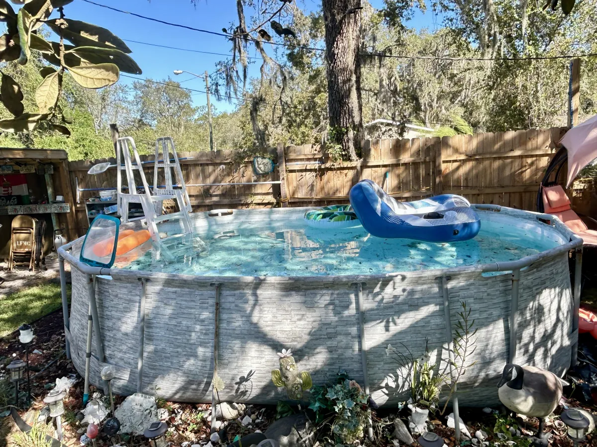 Outside, enjoy your own backyard retreat with an above-ground pool, covered gazebo, and wood-fired pizza oven—perfect for entertaining or relaxing. The partially fenced property includes handcrafted decorative fencing, a netted garden, a chicken coop, two storage sheds, and an older RV (2000) ready for rebuilding. Practical upgrades include an updated electrical panel (2022), well pump (2022), and a 700-gallon concrete septic tank in great condition with an updated drain field.
